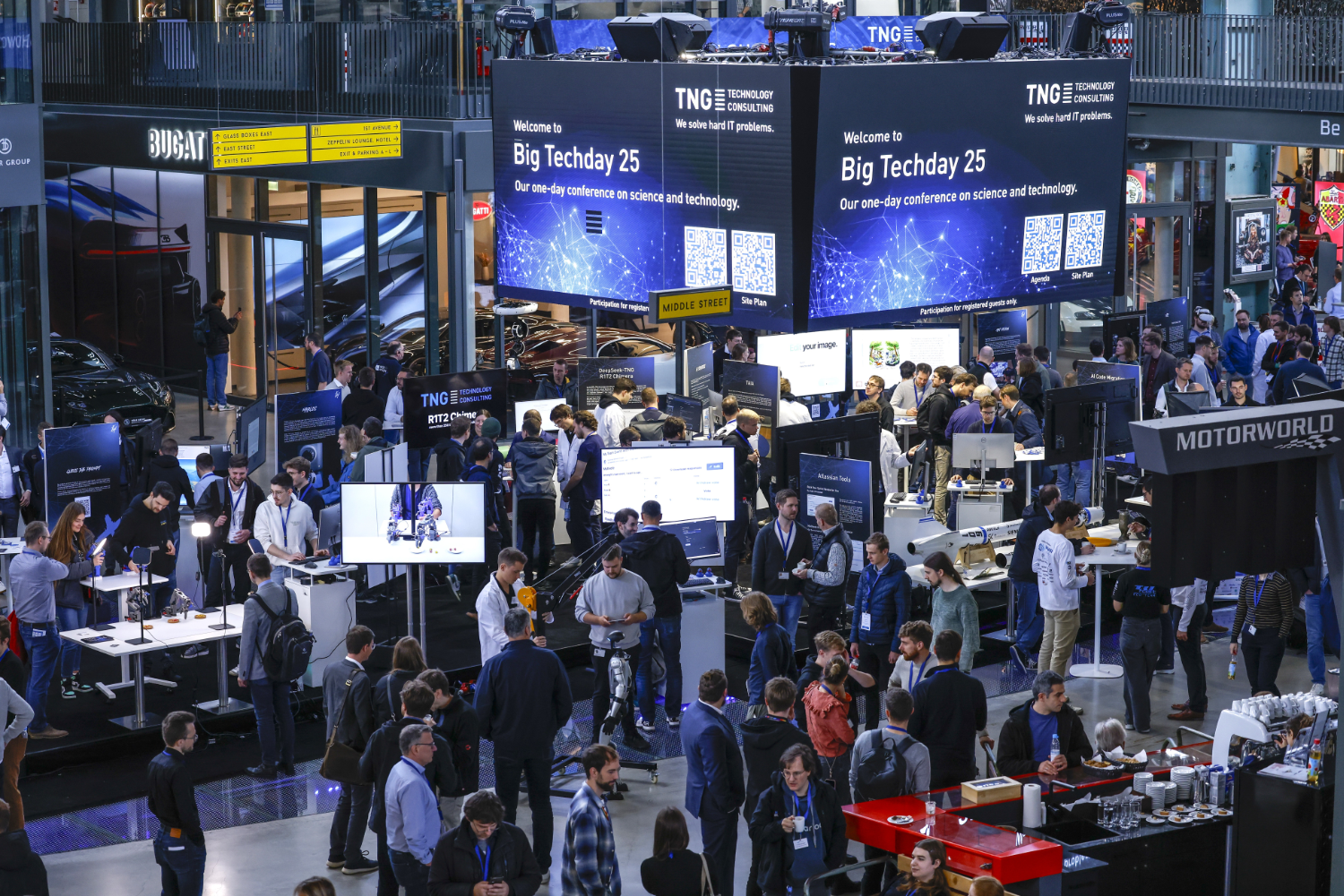 The Big Techday is our one-day conference on science and technology, particularly IT. Most speakers have an IT background, but some also come from other sciences such as physics, mathematics and mechanical engineering. Some are also from other disciplines such as art and sport. TNG has been organizing this event annually since 2007 in Munich.